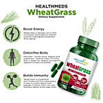 Healthmeds Pure & Natural Wheat Grass Capsules is ideal for Detoxification, Boosting Immunity and Increasing Energy. Wheatgrass is a power food, an excellent source of many vitamins minerals such as vitamins A, B-complex, C, E, l and k. It is rich in protein and contains 17 amino acids. Wheatgrass totally boosts your energy, immunity and detox your body.