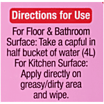 Pour 15 ml of the disinfectant cleaner in 1 L of water and wipe the floor using a mop or wet dusting cloth. |