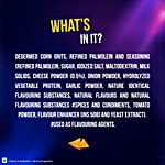 Degermed Corn Grits, Refined Palmolein And Seasoning {Refined Palmolein, Sugar, Iodised Salt, Maltodextrin, Milk Solids, Cheese Powder (0.5%), Onion Powder, Hydrolyzed Vegetable Protein, Garlic Powder, Nature Identical Flavouring Substances, Natural Flavours And Natural Flavouring Substances, Spices And Condiments, Tomato Powder, Flavouring Substance, Flavouring Enhancer (INS 508) And Yeast Extract).