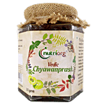 Nutriorg Vedic Chyawanprash is made from organic herbs and fruits. The Nutriorg Vedic Chyawanprash is a combination of 48 herbs and 6 other ingredients. It is less sweet than other such products to increase its nutritional value and be less on calories. It is a 5000-year-old Ayurvedic formula in the form of a multi-herbal jam. It is believed to be a Rasayana for all the tissues of the Human body.