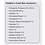 Toddler Craft Box provides a unique blend of creativity and easy concepts for a toddler to create masterpieces. It's a fun, rewarding, and creative way for toddlers to learn a concept. There are seven activities in the gift box.
