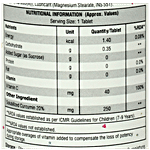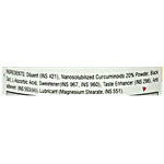 Diluent (INS 421), Nanosolubilized Curcuminoids 20% Powder, Black Salt, L-Ascorbic Acid, Sweetener(INS 967, INS 960), Taste Enhancer, Anti-Adherent (INS 553), Lubricant Magnesium Stearate, INS 551