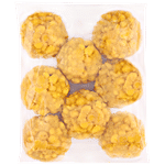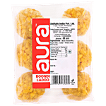 Aura Boondi Ladoo basically an Indian sweet laddu prepared from the boondi snack or besan or chickpea flour pearls. Deep fried boondi pearls are soaked in a sugar syrup and shaped to round balls. It is prepared often for special occasions or festivals. You can enjoy it as a snack or when ever you need something to munch on. Satisfy your sweet cravings with this boondi ladoo.