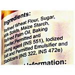 Refined Wheat Flour, Sugar, Milk Solids, Maize Starch, Refined Palm Oil, Baking Powder, Permitted Anticaking Agent (INS 551) Lodized Salt And Permitted Emulsifier And Stabilizers (INS 322, INS 472e)