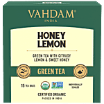 Vahdam Honey Lemon Green Tea Bags, 30 g (15 Pyramid Bags x 2 g each)
