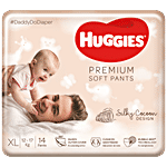 Our softest for your softest. Introducing the premium soft pants with the breakthrough silky cocoon design from Huggies. Huggies premium soft pants diapers extra-large size pack with silky cocoon silken outer cover provides luxurious, silky softness and a wetness indicator.