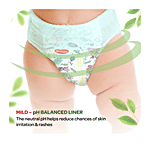 Nature's gentle protection for your baby's delicate skin. Presenting the new Huggies Nature Care Diaper Pants. Made with organic cotton and a pH balanced liner, it's the ideal pant-style diaper for your little one's delicate skin. With no added parabens, latex & chlorine it gently protects your baby's skin. It's more than a diaper pant, it's a hug from Nature. Made with organic cotton and a pH balanced liner with no added parabens, latex & chlorine with the wetness indicator.