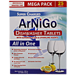 Arnigo dishwahser tablets give you the ultimate cleaning action with dazzling shine. Its superior formulation has the power to break down tough stains, cut through grease and delivers a boost of shine.