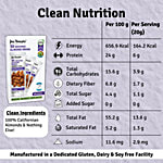 Nutrition per gram/ml: 100g Serving Size: 20g Energy: 656.9 Kcal Protein: 24 g Total Carbohydrates: 15.6 g Dietary Fiber: 6.8 g Total Sugar: 4.4 g Added Sugar: 0g Total Fat: 55.2 g Saturated Fat: 5.2 g Sodium: 11.6 mg