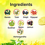 Each 1000g Contains Gymenma Sylvestre 150g, Syzgium Cumini 150g, Pterocarpus Marsupium 150, Momordica Charantia 100g, Boswellia Serrata 100g, Withania Somnifera 100g, Azadirachta Indica 100g, Ocimum Sanctum 90g, Hibsucs Rosa Sinensis 50g, Purified Shilajeet (A.f.i.) 10g
