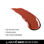 High shine glam lips are now just one stroke away! Introducing the all new Lakmé Absolute Spotlight Lip Gloss. It glides on super smoothly and a single stroke is all you need for a gorgeous gel-shine finish. Watch it transform into a creamy, lip shaping film that hugs your lips with zero sticky effect. Say goodbye to uncomfortable, sticky lips with this amazing formula. A fresh burst of pure shine, this lip gloss is available in 8 stunning shades that give you gorgeous full colour lips. The formula is designed to offer advanced wear with total comfort. Infused with sodium hyaluronate, Lakmé Absolute Spotlight Lip Gloss improves the moisture within your lips and gives them a nice, fuller look. Whether you’re dressing up for a date night or going out for brunch with your favourite gals, there’s a shade for every mood, every occasion.