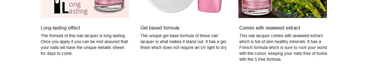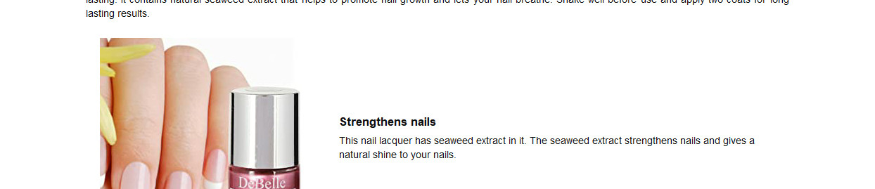 Nail your nail game with DeBelle’s naturally enriched range of Gel Nail Lacquer.It gives a rich salon shine finish with good staying power and gives a very rich and elegant nails. Enriched with anti-oxidant rich seaweed extract, this gel nail polish helps to promote nail growth and to maintain healthy nails by preventing yellowing of nails. DeBelle nail polish is a long lasting, rich colour pay off, French formula. It’s cruelty free & halal certified nail polish. It has an easy to use flat brush that helps to cover the full nail with ease.
