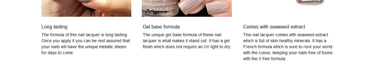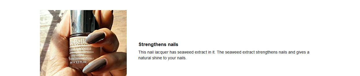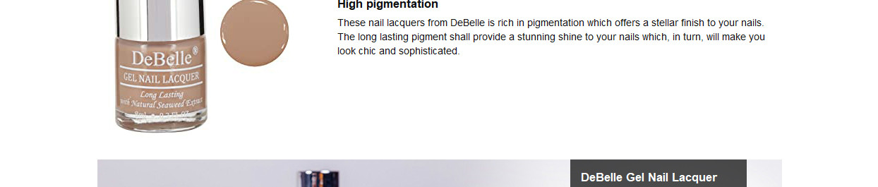 Nail your nail game with DeBelle’s naturally enriched range of Gel Nail Lacquer.It gives a rich salon shine finish with good staying power and gives a very rich and elegant nails. Enriched with anti-oxidant rich seaweed extract, this gel nail polish helps to promote nail growth and to maintain healthy nails by preventing yellowing of nails. DeBelle nail polish is a long lasting, rich colour pay off, French formula. It’s cruelty free & halal certified nail polish. It has an easy to use flat brush that helps to cover the full nail with ease.