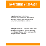 Pearl Millet, Black Chickpeas, Dry Corn Kernels, Wheat, Rice, Sorghum, Mustard Seed, Various Lentils, Spirulina, Cuttlefish Bone, Grit, Etc.