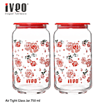 Iveo Glass Amaze Air Tight Jar - Pink, 750 ml (Pack of 2)