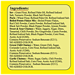 Sweet & Sour Chutney: Water, Jaggery, Sugar, Dates, Tamarind, Chilli Powder, Dry Ginger Powder, Cumin Powder, Refined Iodized Salt, Black Pepper Powder, Corn Flour