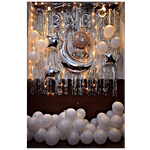 Celebrate your special day with a baby shower decoration. Celebrate baby's birth by throwing a marvellous baby shower party at your home with this adorable silver colour themed baby shower decoration kit. Stick the decorations on the wall using tape and have a cute party with your loved ones. Material: 2 Foil silver curtain 1 Moon foil balloon 3 Star foil Balloon 1 Set of BABY letters foil balloons 1 Baby-face foil balloon 1 Led light 30 White balloons Instructions: Put foil curtains on the wall which you want to take as the backdrop. Tape the top of the curtains to the wall. Add LED light in any pattern you want by sticking it on the wall between the curtains. Blow all the foil balloons using the straw. You can easily blow them with the mouth or a pump. Tape all the foil balloons on the wall. Blow some white latex balloons and add 3 on each side of the backdrop. And let the other white balloons loose on the floor. Voila! Your house is ready for an epic baby shower party.