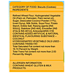 Sugar, Refined Wheat Flour(Maida), Dessicated Coconut Powder (17%), Edible Vegetable Fat [Partially Hydrogenated Vegetable Fat - Palm Oil, Palm Kernel Oil& Palmolein ], Invert Syrup, Milk Solids (1%), Soya Flour, Potato Starch, Iodised Salt, Raising Agent (Ins 500(Ii)), Emulsifier(Ins 464 &Ins 472(E)), Acidity Regulator (Ins 334), Antioxidant (Ins 300)