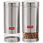 Hazel Stainless Steel Transparent Container is useful to store all your cooking essentials and see the contents of the jar through a visible transparent see through window. It makes it easy for you to check supply levels of food inside containers. It is made from high quality food grade stainless steel container which ensures strength and quality. This modern design see through container is perfect for your beautiful home and kitchen. It is ideal for storing tea, sugar, coffee powder, spices, dry fruits, biscuits, candies, namkeen and cooking essentials. It is a set of 2 containers.