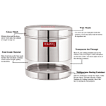 No Question askedHazel Stainless Steel Transparent Wide Mouth See Through Container - Silver