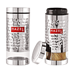 Hazel Stainless Steel Hammered Finish Glossy See Through Container - Silver, 1 L (Set of 2)