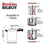 Hawkins Bigboy pressure cooker made from decent quality aluminium which is light in weight and long-lasting. Its outer lid feature is suitable for both separator cooking and direct vessel cooking. It is strong, easy to maintain and safe to use. This pressure cookers results in perfectly and evenly cooked dishes. It also as reasonable price without compromising on the quality. The pressure regulator is secured with a chain to prevent it from being lost. It is suitable for a gas stove and is durable.