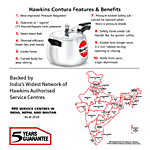 The Conture is Hawkins' largest-selling, most popular range of pressure cookers - perhaps because of its attractive combination of features, benefits, and price. The Contura has a unique body with rounded sides for easier stirring, better visibility, and easy removal of food. For difficult dishes which require a lot of stirring, the Contura is the ideal cooker.