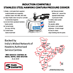 The body and lid of this Stainless-Steel Pressure Cooker with Induction Compatible Base are 100% stainless steel. To ensure uniform heating, the bottom has a core of 4.06 mm thick aluminium sandwiched between two sheets of stainless steel. The base always stays flat, and never bulges. Stainless steel stays bright, does not pit or corrode, is easy to clean and extremely hygienic. Can be used safely for light and deep frying and pressure-cooking. Suitable for gas, electric, ceramic, halogen, and induction cooktops. Suitable for gas, electric, ceramic, halogen, and induction cooktops. Ideal to cook for 3 or 4 persons.