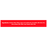 Chicken Meat, Water, Spices & Condiments, Emulsifier (INS 450, 451), Anti-oxidant (INS 300), Colour fixative (INS 250)