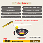 Trm Pure Iron Kadai - 18 cm , with Handle, 1 pc