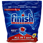 Finish all in one max powerball gives you the brilliant clean and shine you expect, plus added protection against glass corrosion, so your glasses keep their sparkling shine for longer and are protected wash after wash. Now with 10x actions, use finish powerball for a powerful clean every time. Our powerball washes away residue for an amazing shine. Its salt and rinse aid action rinses away residues and helps to eliminate spots and film, delivering a sparkling shine. Finish rinse aid is recommended for best drying results. Finish all in one max is available in a re-sealable bag so there is no need to unwrap individual tablets.