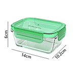 Pasabahce Glass Food/Tiffin/Storage Container - With Green Lid, Rectangle, Lockielock, 365 ml