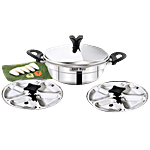No Question askedTallboy Stainless Steel Multi Kadai Idli Maker - 2 Plates,10 Idlis, Induction Base, Bakelite Knob, Silver, Trigon