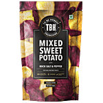 Purple Sweet Potato, Golden Sweet Potato, Palmolein Oil, Rock Salt (51%), Spices And Condiments (Black Pepper (23%), Red Chilli, Coriander), Edible Vegetable Oil (Soybean). Contains Added Flavour (Natural And Nature Identical Flavouring Substances) Used As Natural Flavouring Agent