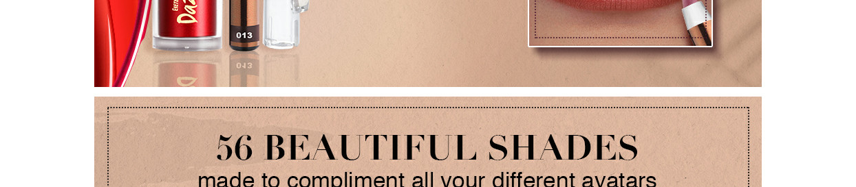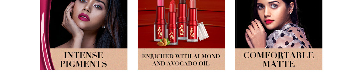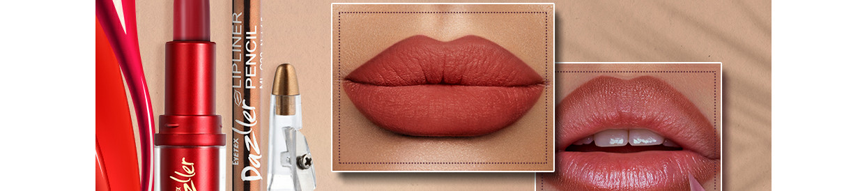 Desi or Western look - We’ve got the perfect, easy glide lipstick for you to give you the matte finish of your dreams. Wear it all day long and it won't smudge, bleed or transfer, we promise. Intensely pigmented and packed with herbal extracts of almond and avocado oils, our lipstick gives you the glam look with nourishment. Dress up, put that lipstick on and slay in 56 dazzling ways!. Matte Range - Vivid Shades in 56 matte shades. Net 4g. Get free inside Eyetex Dazller Lipliner pencil.