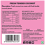 Baskin Robbins Tender Coconut Ice Cream Is made with the finest cream and tender coconut. It contains a healthier type of saturated fat. It is a luscious and creamy treat for your taste buds. Fresh coconut ice cream with fresh coconut pieces.