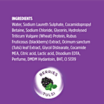 Water, Sodium Laureth Sulfate, Cocamidopropyl Betaine, Sodium Chloride, Glycerin, Hydrolyzed Triticum Vulgare (Wheat) Protein, Rubus Fruticosus (Blackberry) Extract, Ocimum Sanctum (Tulsi) Leaf Extract, Glycol Distearate, Cocamide MEA, Citric Acid, Lactic Acid, Disodium EDTA, Perfume, DMDM Hydantoin, BHT, CI 51319