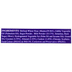 Refined Wheat Flour (Maida)(29.06%), Edible Vegetable Oil (Palmolein Oil), Sugar Powder, Milk Powder (10.17%), Semolina, Rock Sugar(Misri), Hydrogenated Vegetable Fat (Palm Oil and Sesame Oil), Grated Dry Coconut (4.35%), Almond (2.32%), Cashew(1.45%), Chironji, Colour(INS102 & INS110), Cardamom and Preservative (INS202).
