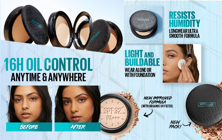 Achieve a flawless, natural-matte finish that lasts up to 12 hours with Maybelline New York's Fit Me Matte+Poreless Compact Powder. Formulated with SPF 28 PA+++ and UV filters, this dermatologically tested, non-comedogenic powder protects your skin from sun damage and darkening. Suitable for normal to oily skin types, the compact powder can be applied all over the face or focused on the T-zone area to control oil and shine throughout the day. With its long-wearing, humidity-resistant formula, this compact powder delivers a matte look that lasts for up to 16 hours. Should you receive a damaged, defective, or incorrect item, you can request a refund or replacement within 4 days of purchase, provided the item is in its original condition with all packaging and accessories intact.