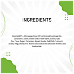 Onion Bhaji Onions (50%), Chickpeas Flour (25%), Refined Sunflower Oil, Coriander Leaves, Green Chilli, Fresh Garlic, Cumin, Salt, Rice Flour, Sugar, Coriander, Ajwain Seeds, Red Chilli, Turmeric, Acidity Regulator (Citric Acid - E330) Sodium Bicarbonate (E500Ii) And Asafoetida.