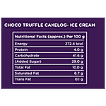 Choco Truffle Cake Log - Ice Cream Ingredients: Middle Layer - Ice Cream (47%): Water, Milk Solids, Sugar, Cocoa Solids, Chocolate, Permitted Emulsifiers (471) And Stabilizers (412, 407,410). Contains Permitted Synthetic Food Colours (110, 102, 122, 133) And Added Artificial Vanilla Flavour. Top Layer (40%): Chocolate Glaze (18.5%) [Liquid Glucose, Water, Sugar, Cocoa Solids, Gelling Agents (406, 440), Acidity Regulators (334, 575), Preservative (202), Permitted Emulsifiers (452, 471)]. Non Dairy Chocolate Whip Cream (18%) [Water, Sugar, Hydrogenated Palm Kernel Oil, Liquid Glucose, Cocoa Solids, Milk Solids, Caseinate, Emulsifiers (433, 491, 475), Stabilizers (461, 415, 412), Iodised Salt, And Acidity Regulator (330)], Sugar Confectionery (3.5%) [Contains Additives - Permitted Glazing Agents (904), Anticaking Agent (555), Contains Permitted Natural And Synthetic Food Colours (160b, 133, 124, 127, 102, 110, 132, 122, 171) And Added Artificial Vanilla Flavour]. Bottom Layer - Eggless Chocolate Cake & Sauce (13%): Eggless Chocolate Cake (11%) [Sugar, Wheat Flour, Cocoa Solids, Milk Solids, Edible Vegetable Oil (Cottonseed Oil), Raising Agents (500(Ii), 541(I), 341(Ii), 341(I)), Corn Flour, Emulsifiers (477, 471), Stabilizer (415), Iodised Salt, Humectant (420)], Sauce (2%) (Sugar, Liquid Glucose, Cocoa Solids, Milk Solids And Water). Contains Added Artificial Vanilla Flavour