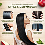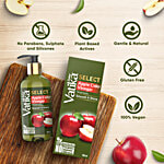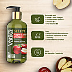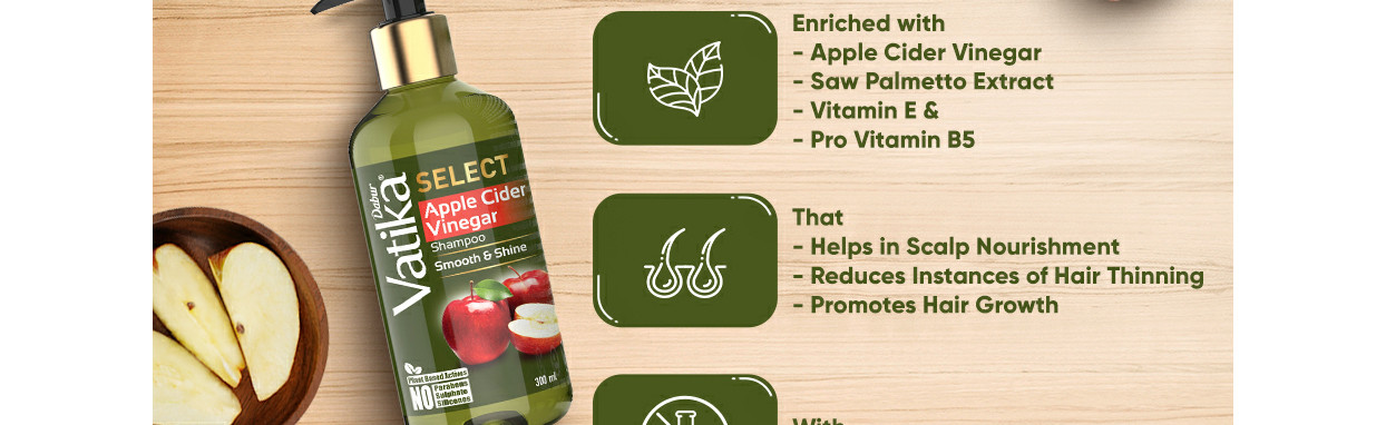 Dabur Vatika select apple cider vinegar shampoo is powered with pure & natural botanicals like apple cider vinegar, that help cleanse scaly build-ups to let your scalp breathe free which helps in overall hair health & makes your hair smooth & shiny. This pleasant-smelling shampoo is enriched with saw palmetto extract, vitamin e & pro-vitamin B5 that helps in scalp nourishment, reduces the instance of hair thinning & promotes hair growth. It is enriched with plant-based actives that help make hair smooth & shine. It is free from chemicals like sulphate, parabens & silicones, which may harm your hairs and scalps natural oil balance. It is also 100% vegan and gluten-free. So, now use Dabur Vatika select range of shampoos for damage-free nourished hair.