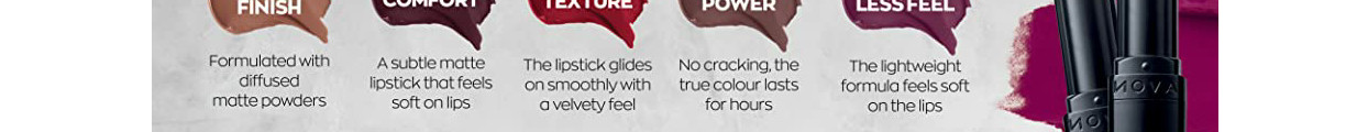 Create a radiant look with Avon True Color Perfectly Matte Lipstick Collection. Experience the plush, pigment-rich formula in an absolutely matte finish. The formulation delivers flawless coverage and assures precise application for a perfectly contoured pout. The creamy yet matte formula gives your lips a great finish. It provides guaranteed comfort with no drying, cracking, and no caking. So up your game with a finishing touch of matte shades to set off those glamorous evenings!