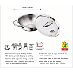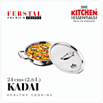 Kitchen Essentials Tri Ply Stainless Steel Kadai - 3 Layer, With Induction Base & Lid, 24 cm, 2.6 L