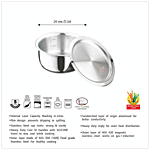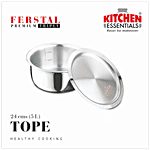 Kitchen Essentials Triply Stainless-Steel Tope with Stainless Steel Lid has three layers. It is made with two layers of stainless steel and an aluminium core. It ensures even and consistent heating. It is an ideal cookware for any kitchen. It is easy to clean, wash and is long-lasting. This cookware is used for preparing and cooking food or stylishly serving food. This 24 cm tope has a stainless-steel lid for easy and efficient cooking. It is compatible with both gas stoves as well as induction.
