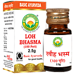 Basic Ayurveda Loh Bhasma 100 Puti - Helpful For General weakness, Liver & Spleen Problems, 2.5 g