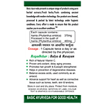 The BASIC AYURVEDA name is symbolic of its origin. " BASIC" means "Essential" or "Fundamental", which is necessary for living. And is synonymous for the our superior quality . "AYURVEDA "means "the knowledge for long life".It is an ancient Indian branch of medicine... based on herbs and plants to cure diseases and enhance health. Basic Ayurveda present's a unique range of products using pure herbal extract/fresh herbs/fruits combining ancient knowledge with modern technology. Our products are cleaned, processed & packed by letest technology under hygienic conditions. Every effort is made to ensure that this product reaches you in excellent conditions. Basic Ayurveda Aamla Capsule is formulated with the Amla herb which has diuretic and anti-inflammatory properties. It is enriched with the goodness of essential vitamins and nutrients. Amla helps in relieving Vata doshas and helps in relieving pain and inflammation in joints. It not only makes skin and hair healthy but also improves vision. It regulates the blood sugar level and improves digestion. It helps in the purification of blood and also has anti-aging properties.