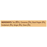 Tea 80%, Cinnamon 5%, Black Pepper 4%, Cardamom 4%, Ginger 4%, Clove 35