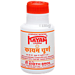 Kayam Churna Useful in chronic constipation, acidity, Headache, burning sensation in eyes, soles of the feet or hands, skin diseases, burning in chest and nausea. Take at bedtime to get a clear stomach in the morning. It keeps you fresh and healthy throughout the day.
