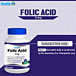 Folic Acid 5 mg promotes energy levels and metabolism. It promotes cardiovascular health. Folic acid is an essential B vitamin that is ideal for anaemia deficiency.